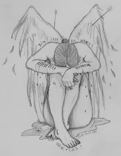 Ich weine. Ich weine schon seit ich widerwillig aus dem Bett gekrochen kam. Ich musste beim Laufen weinen. Weine beim Anblick des grauen Himmels, mir kommen die Tränen wenn ich die Leere in mir fühle, die Schuld, dass ich mein Umfeld vernachlässige. Ich hatte den Plan, nach dem Essen spazieren zu gehen und meine alte Nachbarin zu besuchen. Doch ich kann nicht. Ich weinte vor dem Lauf und musste mich aufschlitzen. Mit dem brennenden Schmerz im Gepäck rannte ich los. Die Musik wetterte durch meinen Körper und die Tränen liefen meine eiskalten Wangen hinab. Auch jetzt beim Fernsehen muss ich Heulen. Das Thema „Bulimie“ bringt mich zum Heulen. Schon als ich heute Morgen wieder auf der Waage stand, fühlte ich sie. Dieses schreckliche Gewicht, diese Unförmigkeit und diese verfluchte Leere und alles was ich mache und lasse ist für’n ARSCH!!!! Die Leere ist so präsent, dass sie mich erdrückt. Ich kann nicht mehr. Ich will auch gar nicht mehr.