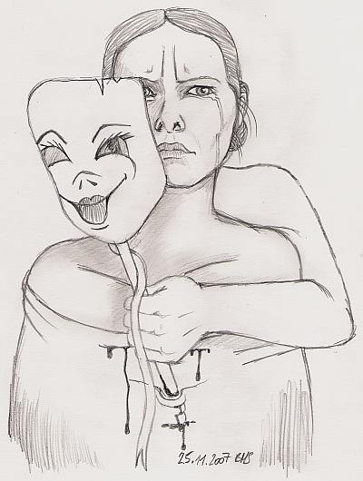 Es ist mir egal, ob ich beobachtet werde, weil ich hier mit meinem Notebook hocke. Die letzten Reste Aufmerksamkeit habe ich unter den Kopfhörern versteckt und gebe mir mit lauter und vor allem böser Musik die Kante. Will nicht mehr reden, nicht mehr lachen müssen. Als mir bewusst wurde, dass ich es schon wieder tue, also schon wieder in einen funktionierenden Zustand kippe nur um meinem Umfeld ein gutes Gefühl zu geben, fühlte ich mich schrecklich. Schäbig, dreckig und verlogen. Mir ist ÜBERHAUPT nicht nach Witzen, mir ist nach Heulen, nach Aufschlitzen. Zwei Gesichter und ich kenne mich immer noch nicht. Welches ist echt?