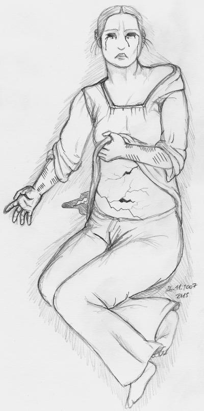 Dann Warten. Ich rutsche auf dem Stuhl hin und her, meine Stimmung plötzlich von aufgesetztem Grinsen in tiefe Ernsthaftigkeit abgerutscht. Die Ewigkeit hat mich wieder. Und ich muss wieder über meine Wertlosigkeit nachdenken und versuche diese mit Bleistift auf Skizzenpapier zu bannen.