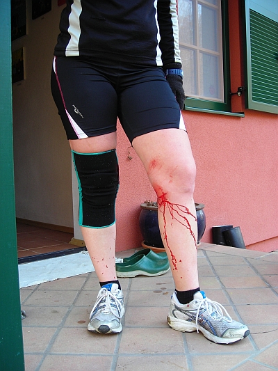 ist leicht angeschwollen und die Wunden reißen beim Abziehen des schäbigen