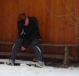 Meine Arbeit ist praktisch, die Integrationsbegleitung ist immer auf Möbelspenden angewiesen und ich werde so nebenbei lästig gewordene Schränke und Kommoden los. Vorausgesetzt sie kommen heute mit dem Pritschenwagen den verschneiten Hohlweg hoch. Bin immer noch schrecklich müde, wäre lieber im Bett geblieben als aufzustehen und in der Firma über den Zustand unsrer Einfahrt Bescheid zu geben. In meinem Traum war ich längst im Krankenhaus und sollte noch eine Untersuchung über mich ergehen lassen, die erst entscheiden würde ob ich für die Therapie in Frage komme oder nicht. Die Ärztin sagte aber im Voraus: „Sieht schlecht aus, das wird wohl nichts!“. Ich bekam Panik und flüchtete mich in andre, verwirrende aber auch ruhigere Bilder. Ich bin tatsächlich aufgeregt. Und trotz aller Vorzeichen unerschütterlich, was den kommenden Lauf betrifft. Gestern wurde ich mehrfach vom Wege abgebracht, erst schlossen sich die Bahnschranken vor meiner Nase und ich musste vorzeitig abbiegen, dann hatte ich erst einen Minischneepflug vor mir auf dem Gehsteig und ich fühlte mich königlich, doch dann machte er mitten im Weg eine Kehrtwendung, fuhr zurück und die geplante Strecke vor mir war dermaßen zugeschneit, dass ich wieder umkehren musste. Und auf den 6km war alles vertreten was Rang und Namen hat. Die Schwäche im Bein ging gleich am Anfang los, die Lähmung ließ sich nicht lange bitten. Hinzu kamen massive Schwächeschmerzen im linken Bein, von Spaß war keine Rede. Pausen um Pausen folgten. Erst vorm Schuhschrank stehend erinnerte ich mich an das Paar Trailschuhe, die besseren Griff auf all dem Schnee gegeben hätten. Aber die Knie schmerzen ohnehin schon, die Schuhe hätten es nur noch angeheizt. Und? Was mach ich jetzt? Eine Laufpause scheint inakzeptabel. Der Arm noch länger, das Bein noch schwerer. Dennoch, unerschütterlich sitz ich wieder in meinen Laufsachen bereit um heute eine viel anspruchsvollere Strecke in Angriff zu nehmen. Auf Teufel komm raus.